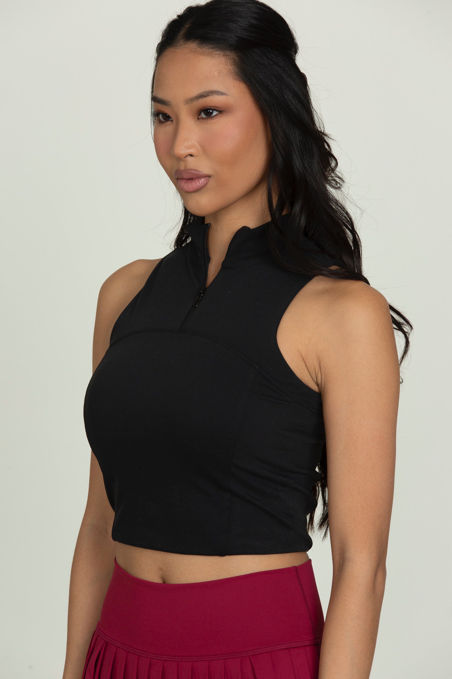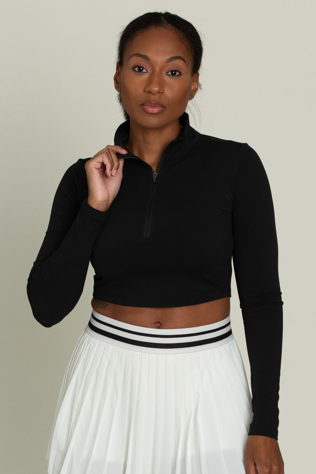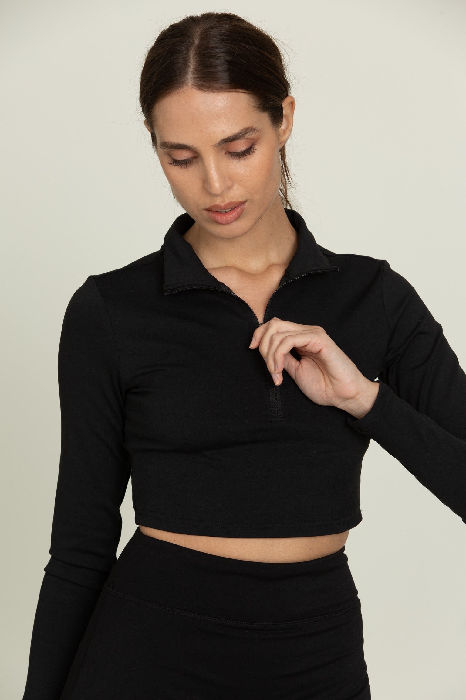 Black Athletic Half-Zip Crop Top
