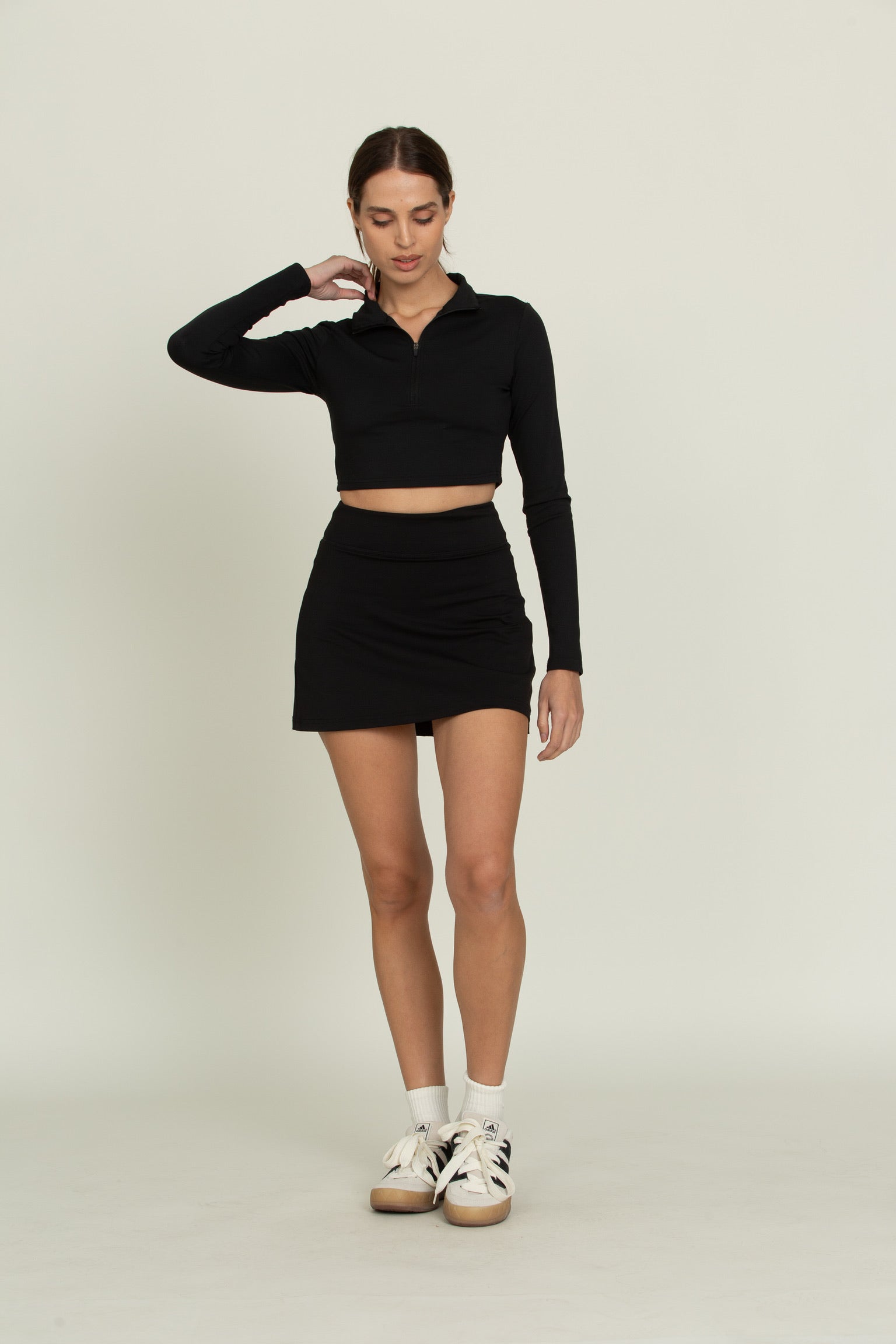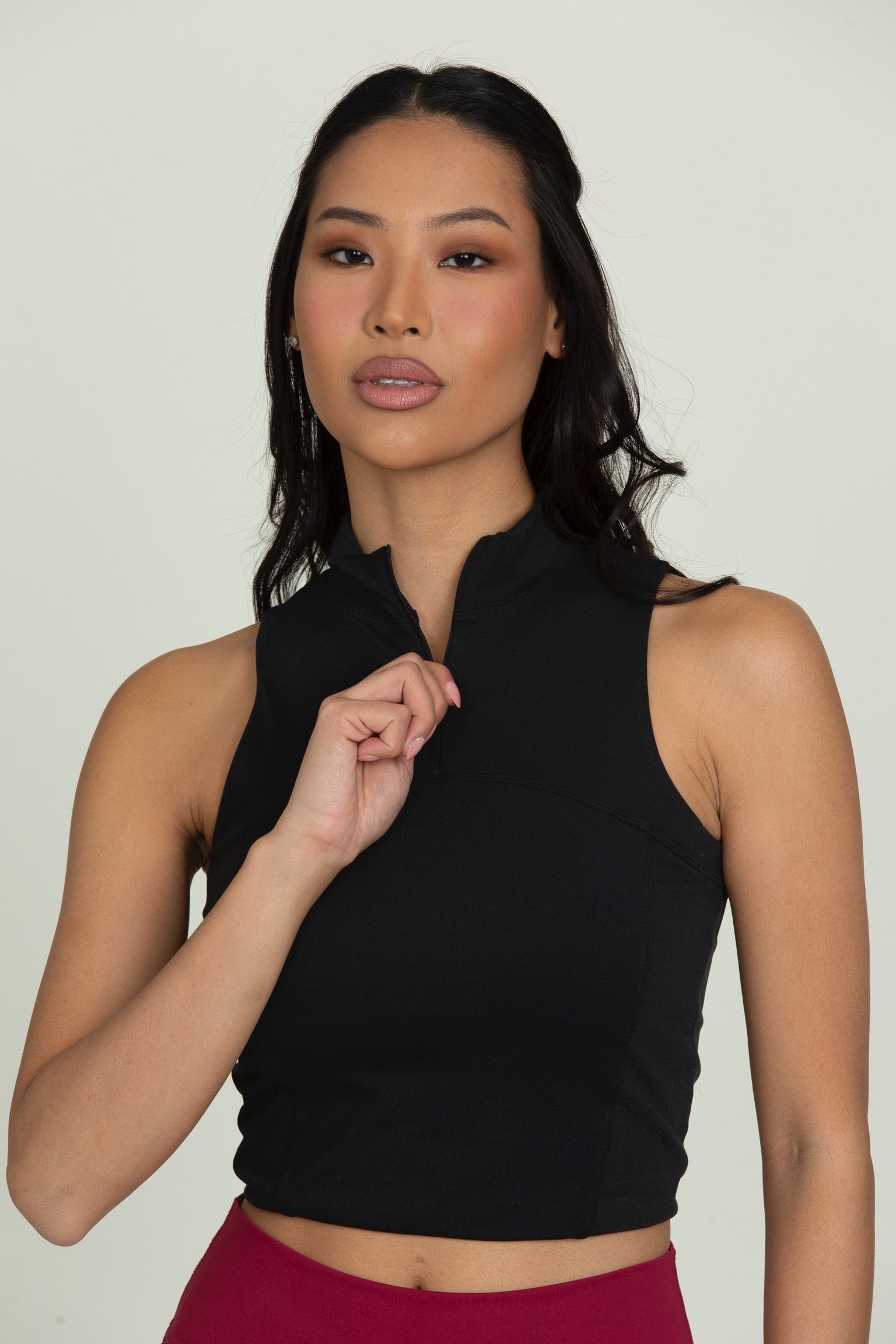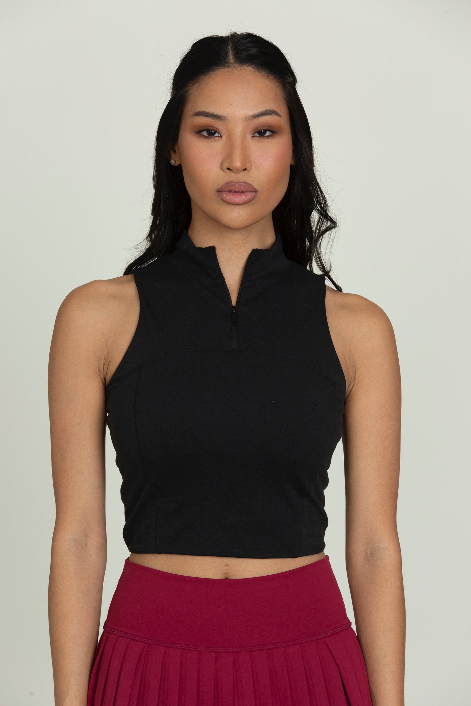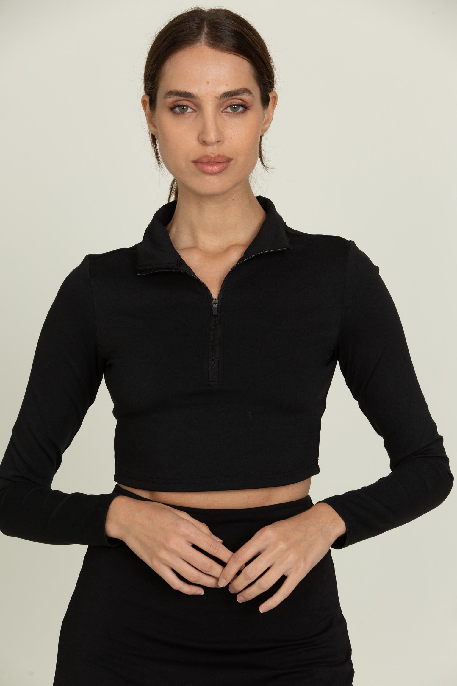 Black Athletic Half-Zip Crop Top