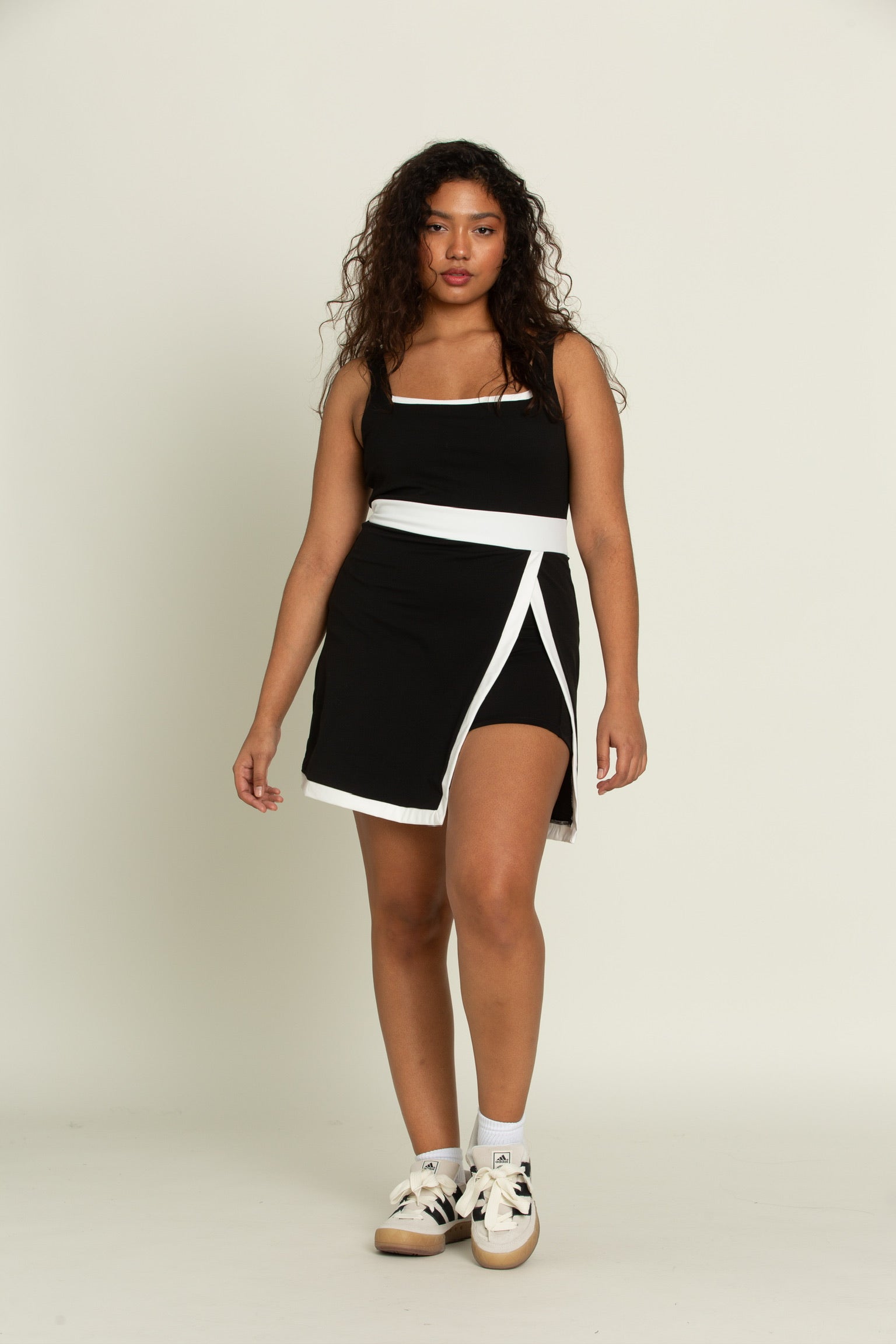 Black White Lined Active Dress