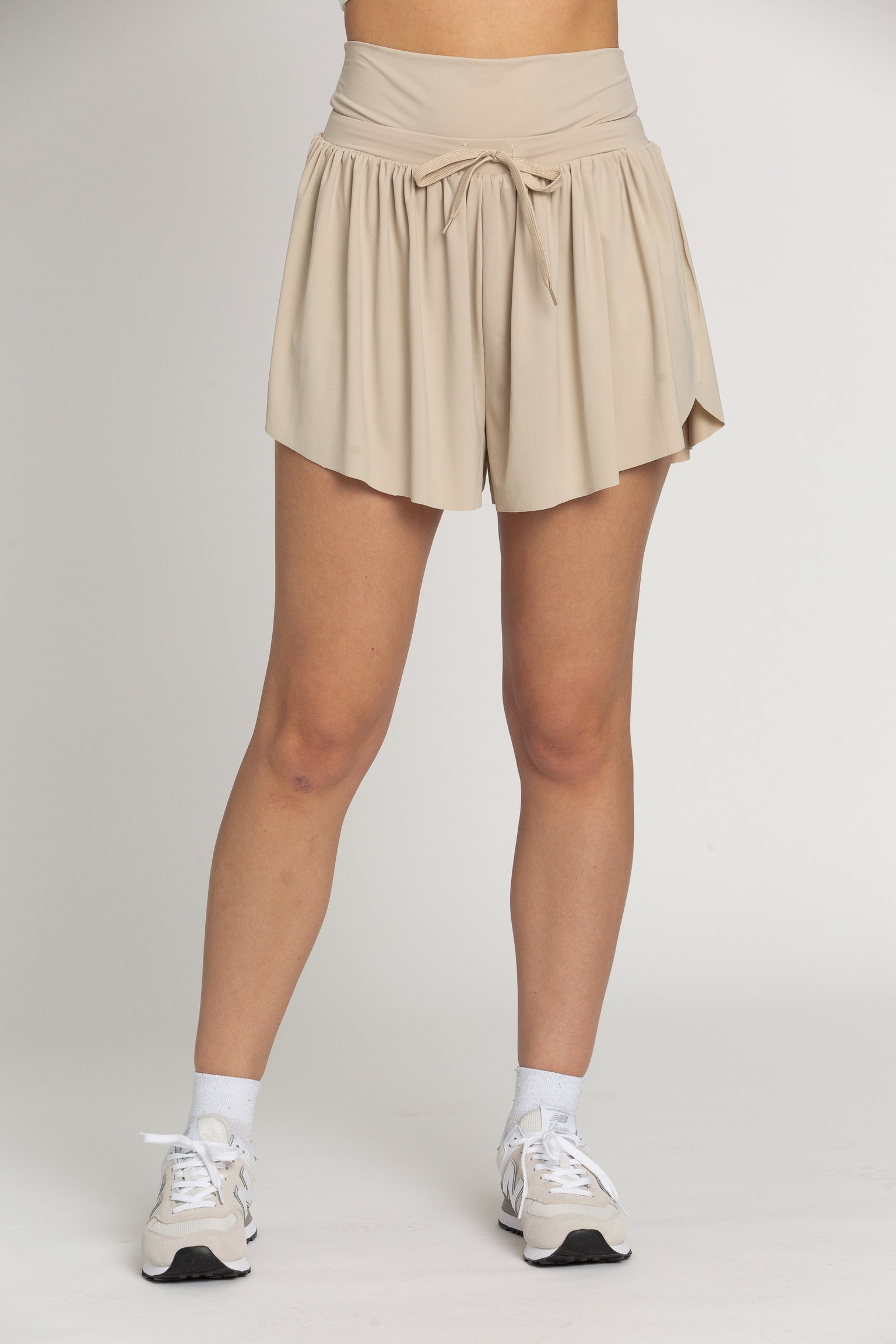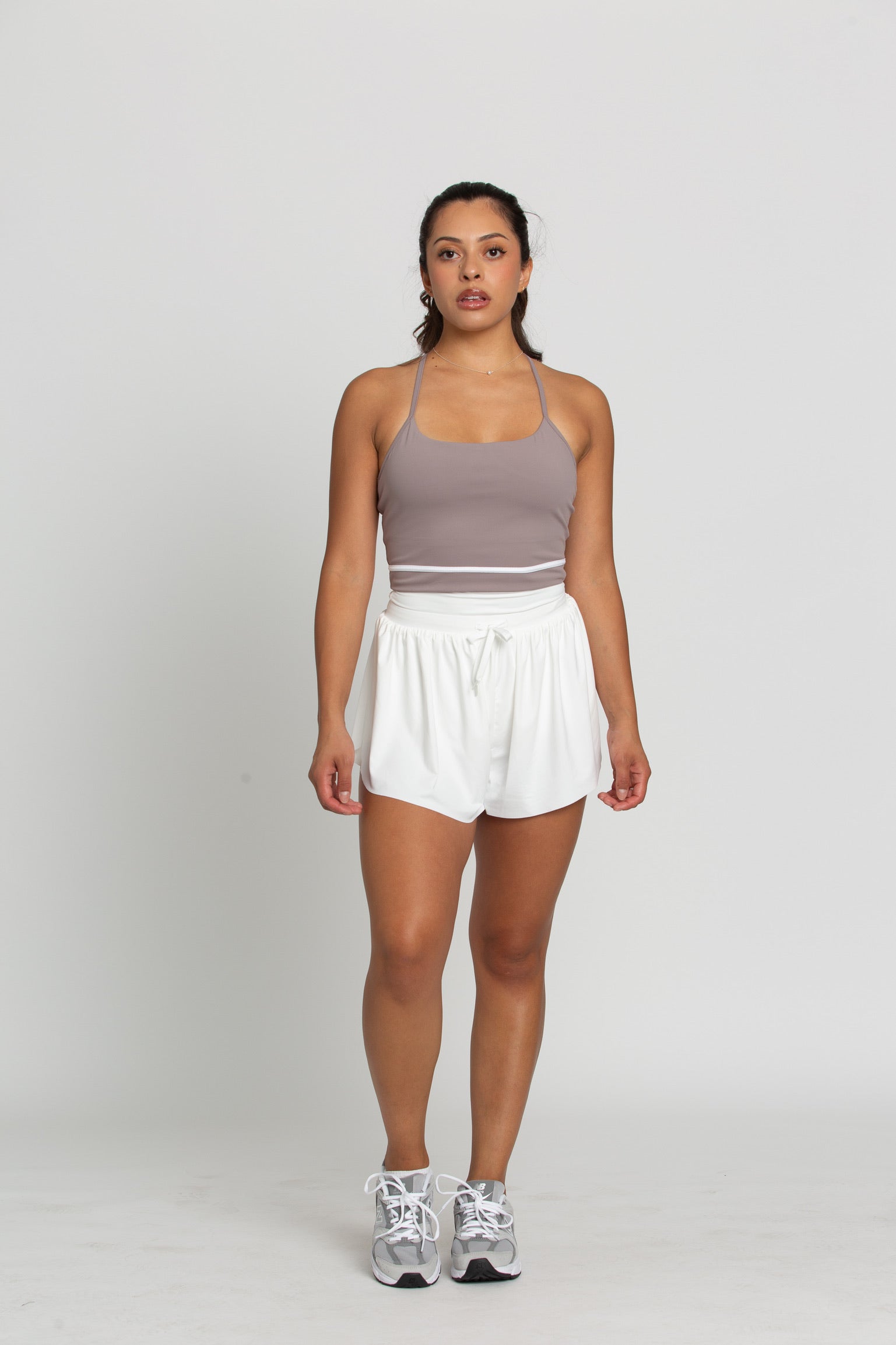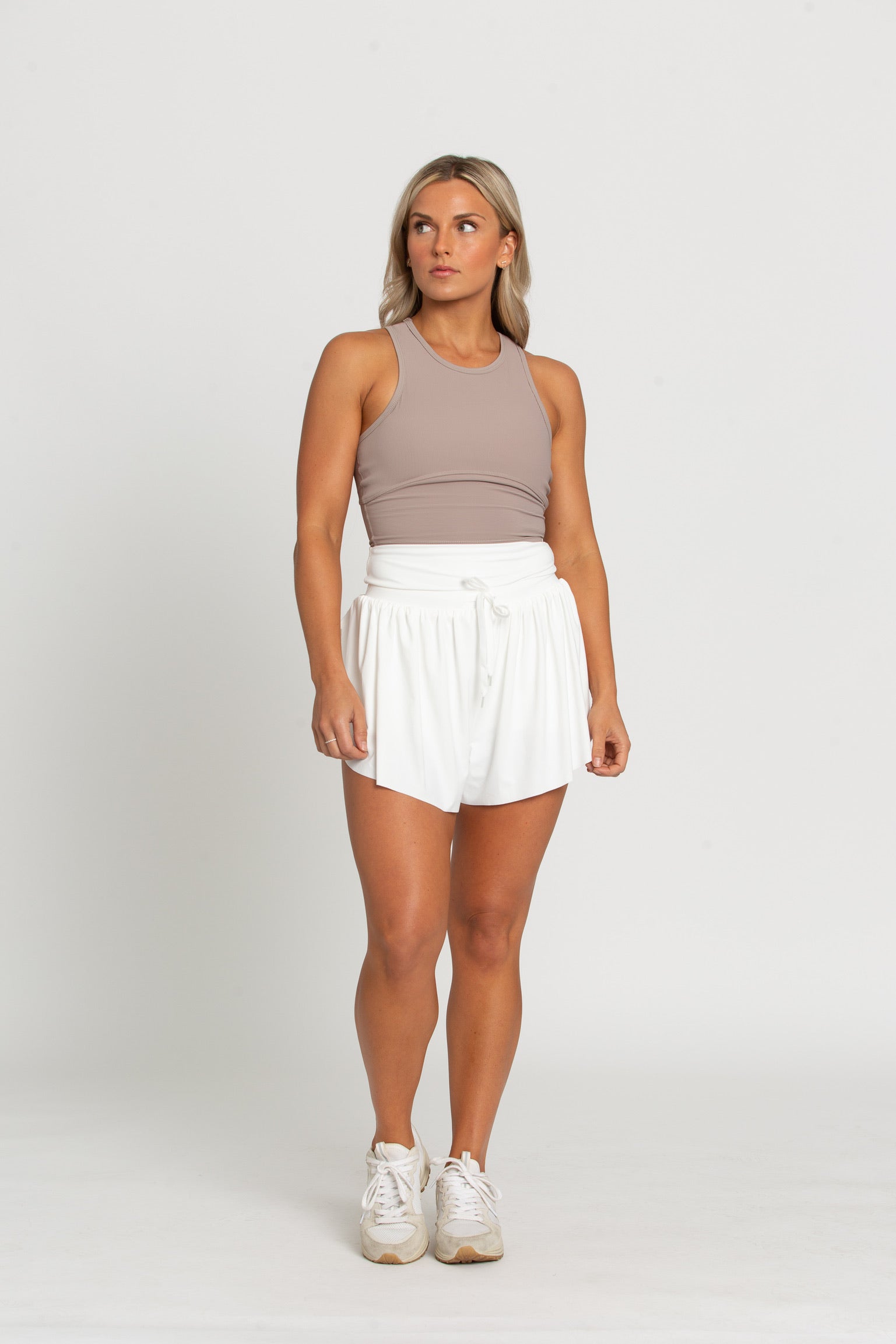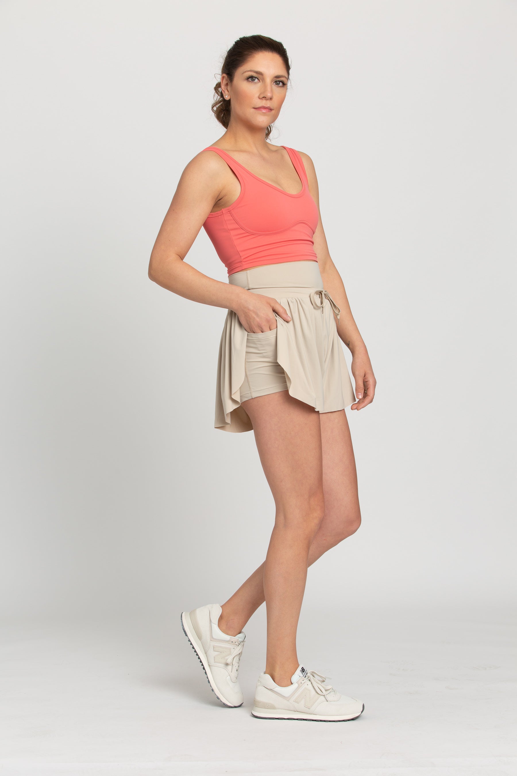 Bone 2-Toned Tiered Pleated Tennis Skirt