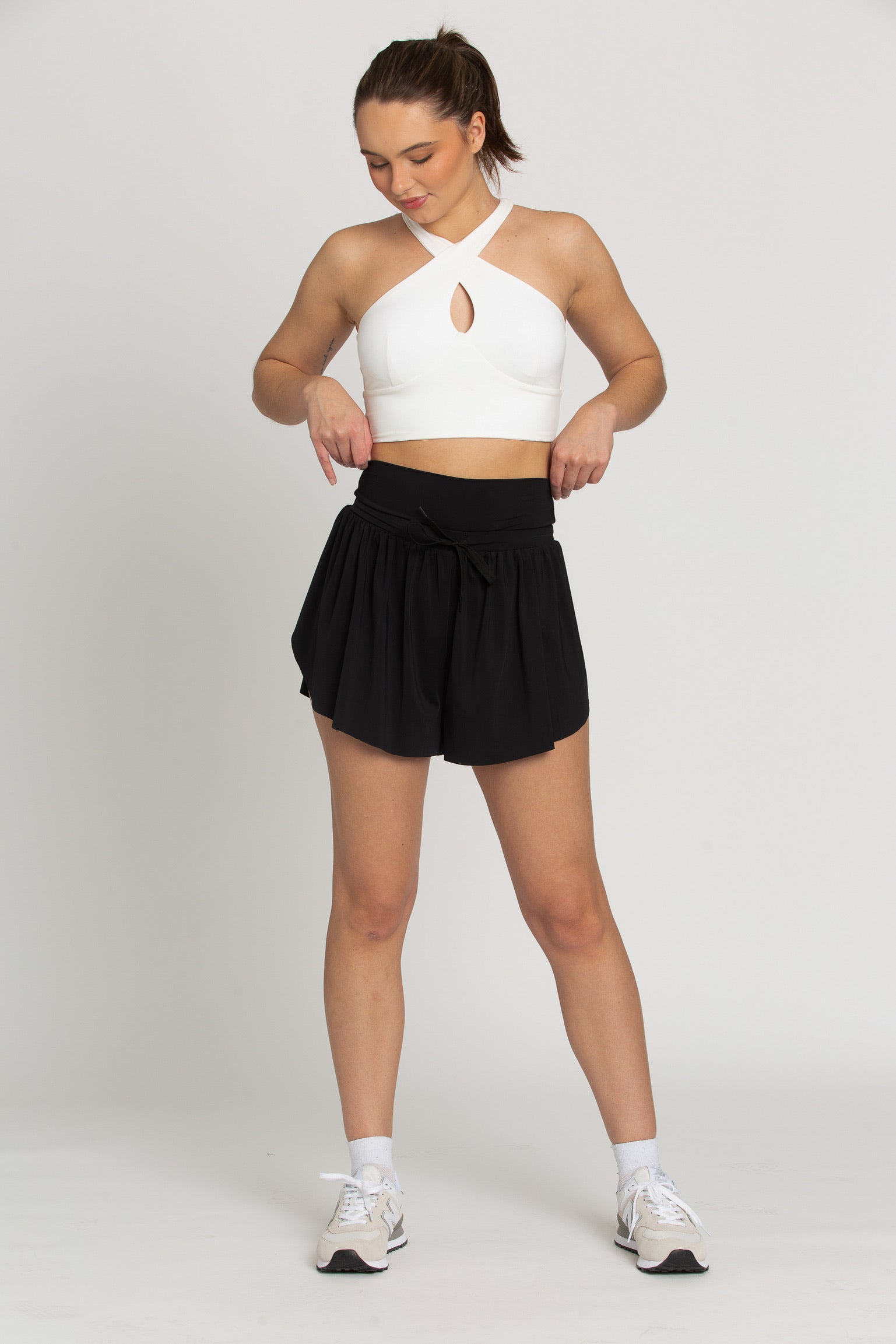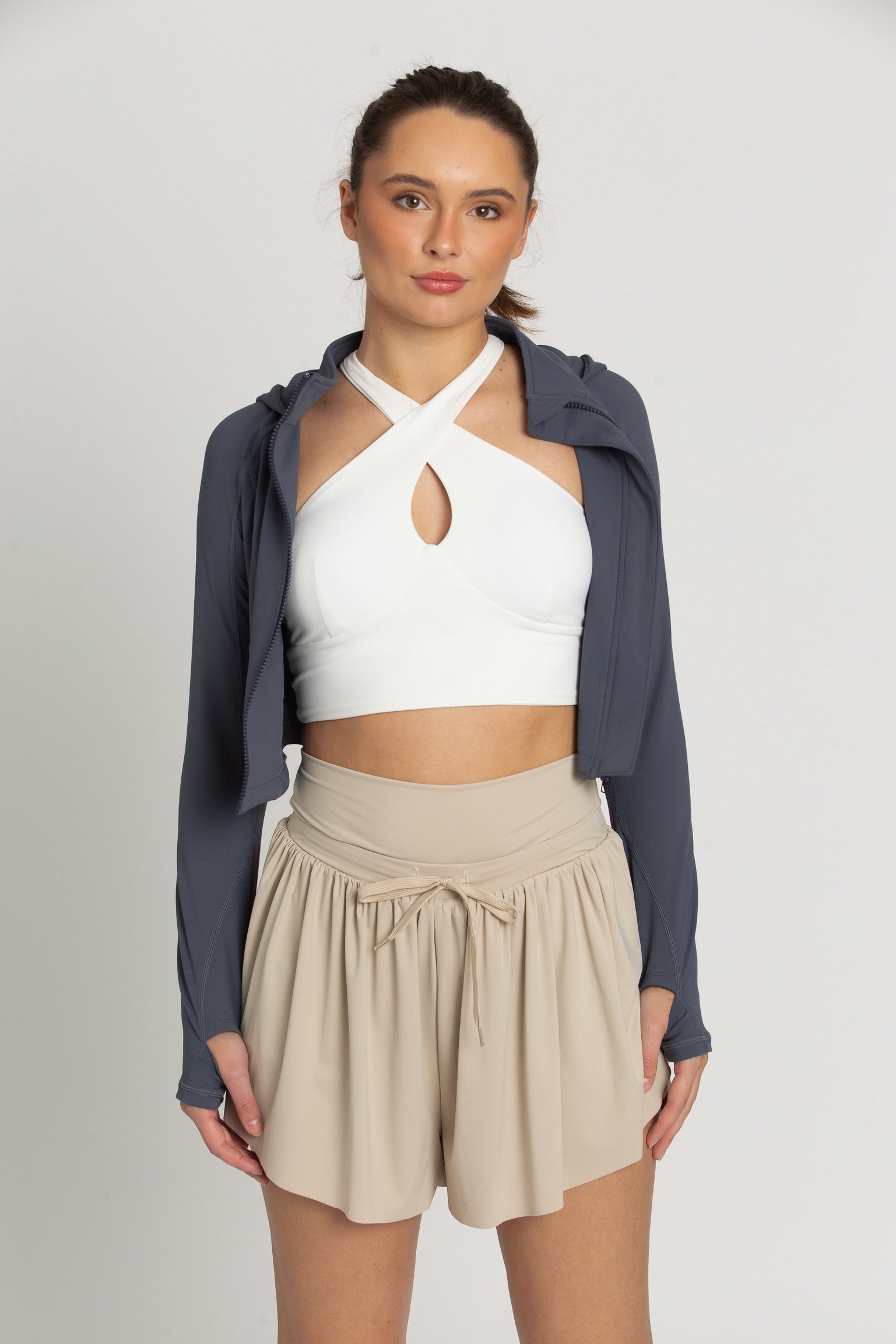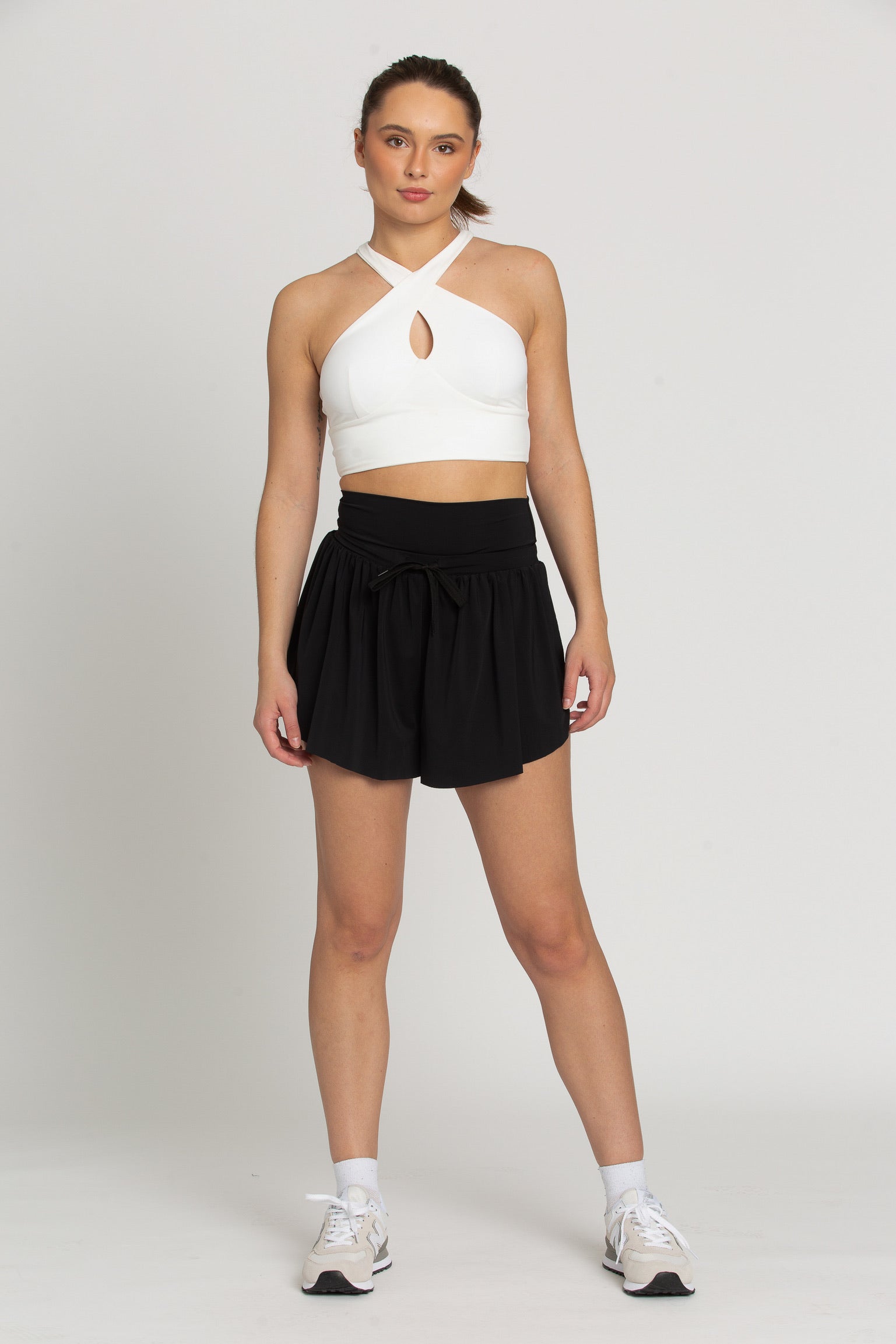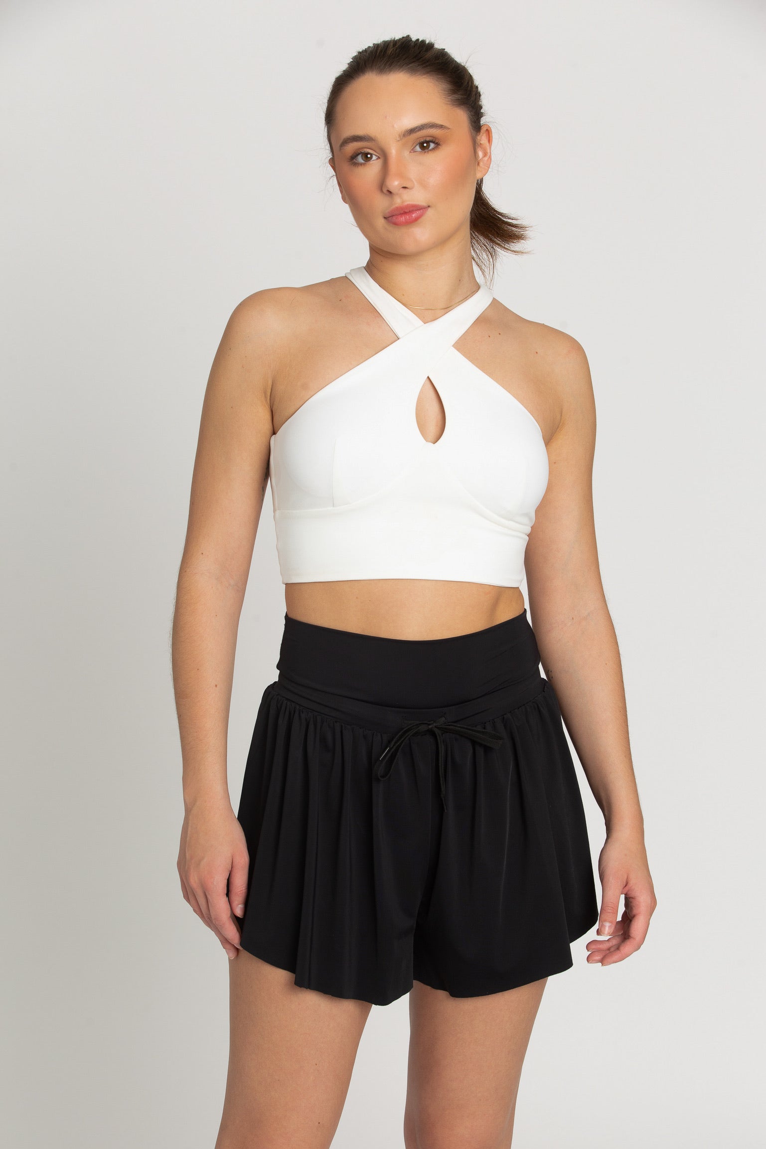 Bone 2-Toned Tiered Pleated Tennis Skirt