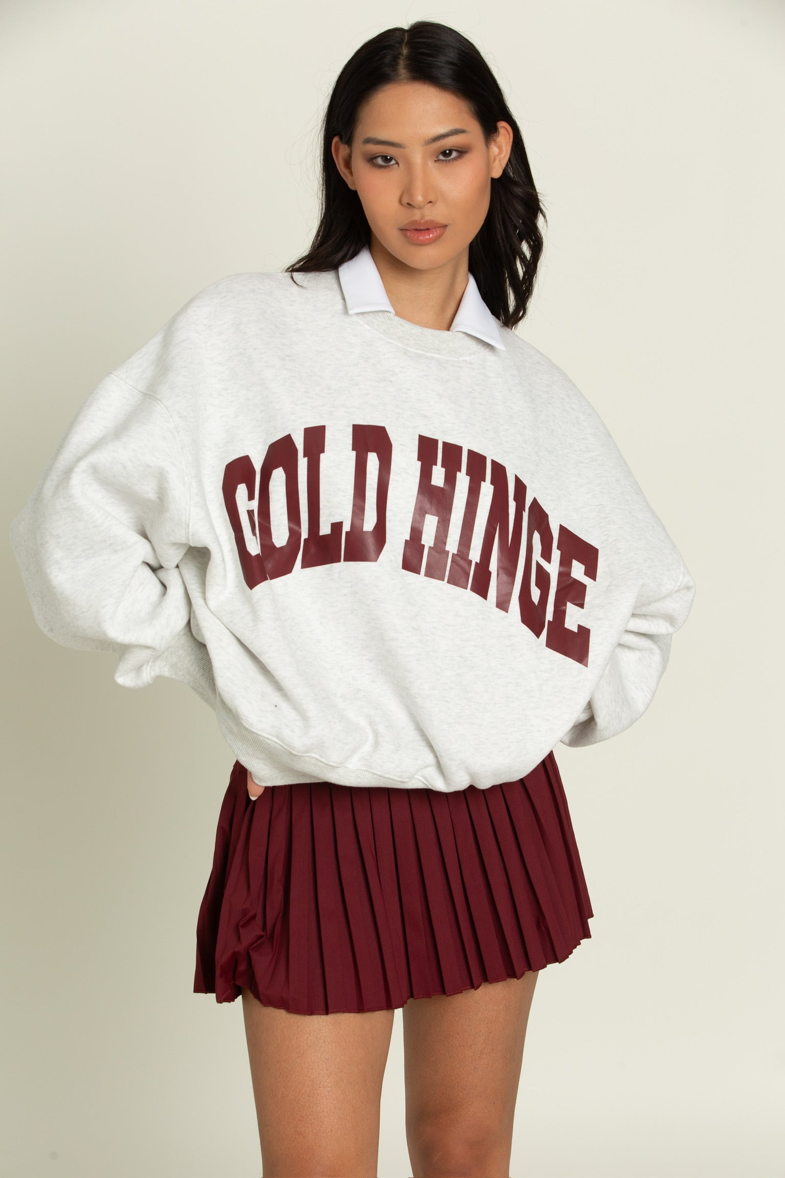 Heather White Maroon GH Wide Arm Sweatshirt