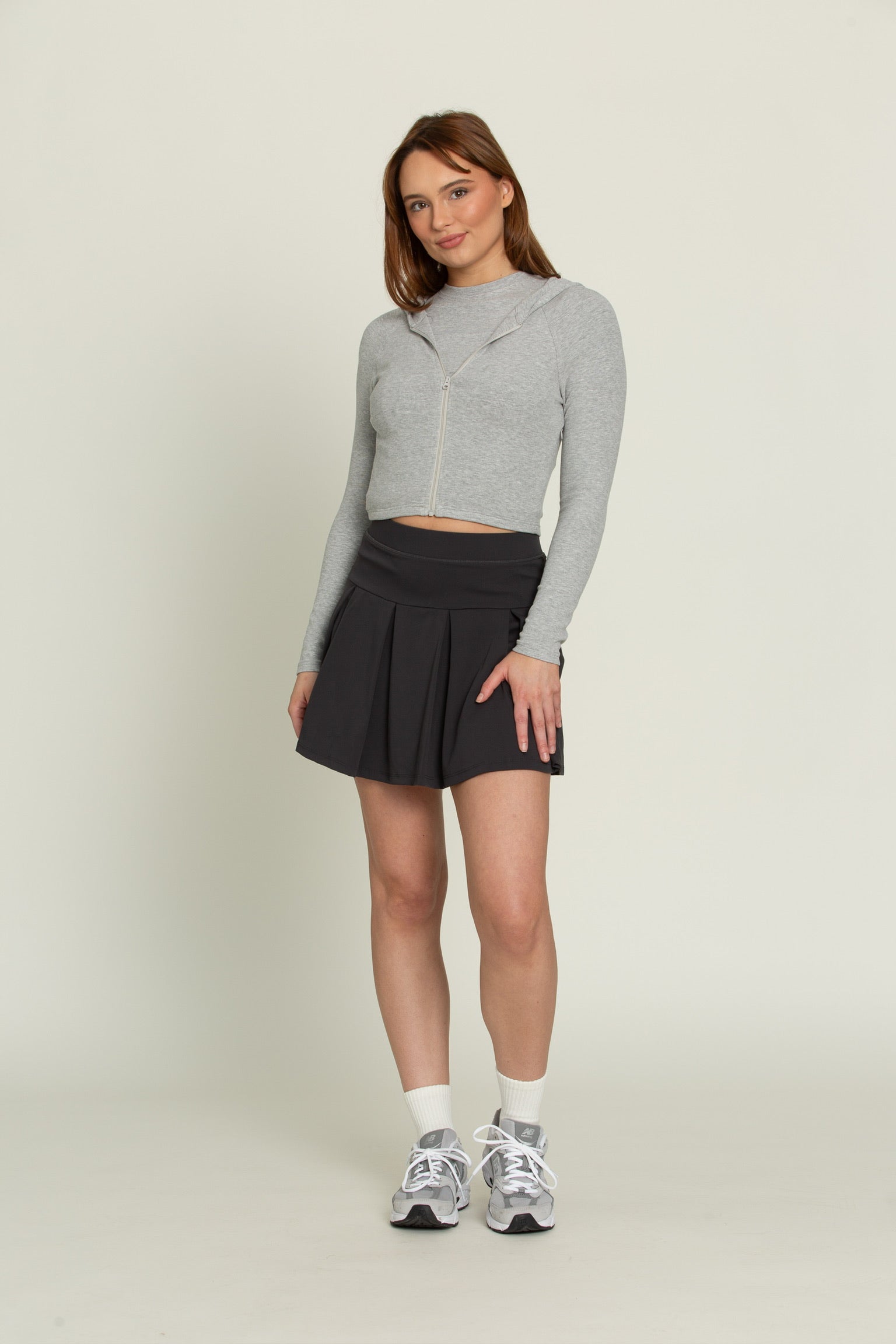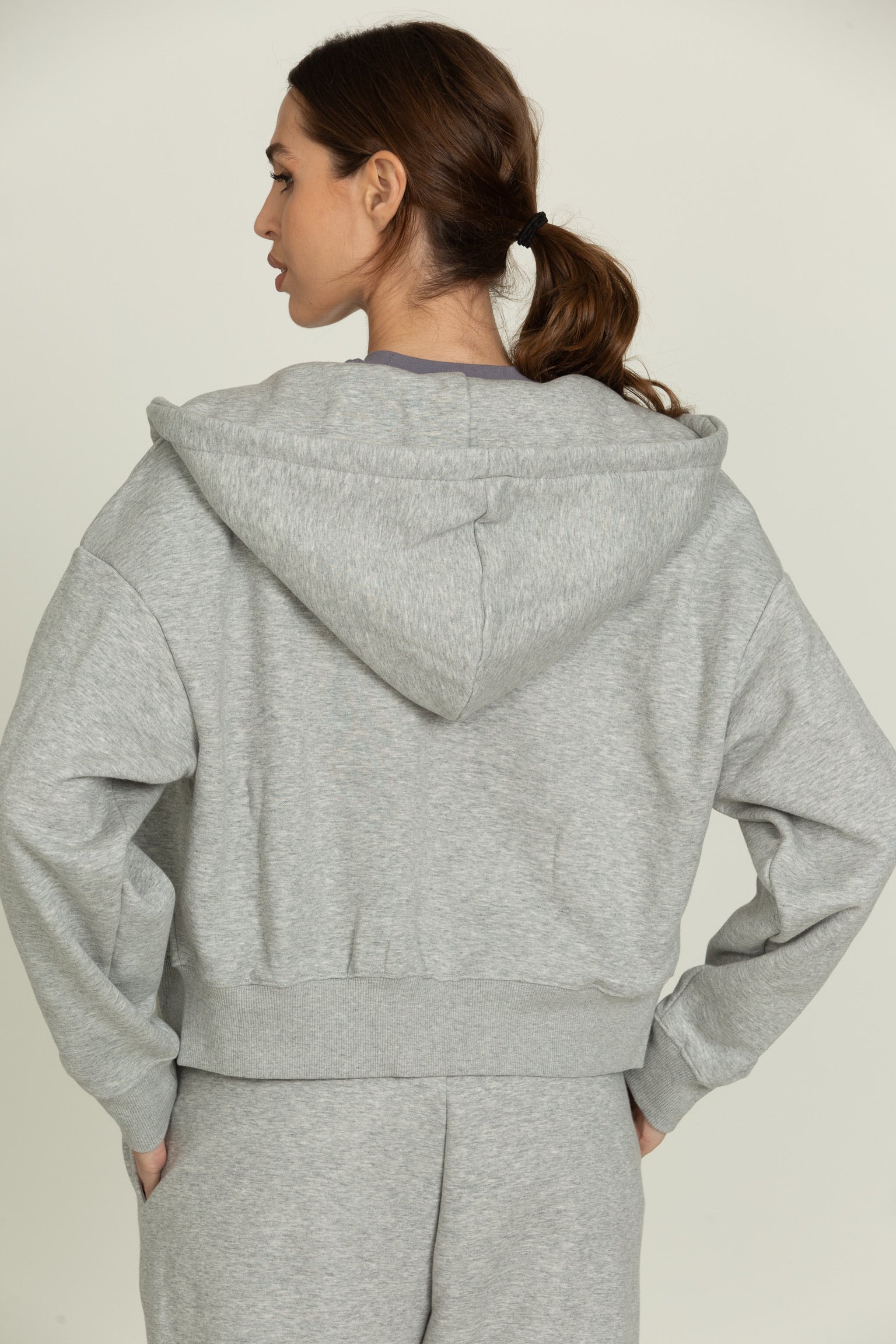Heather Grey Ribbed Hoodie Jacket