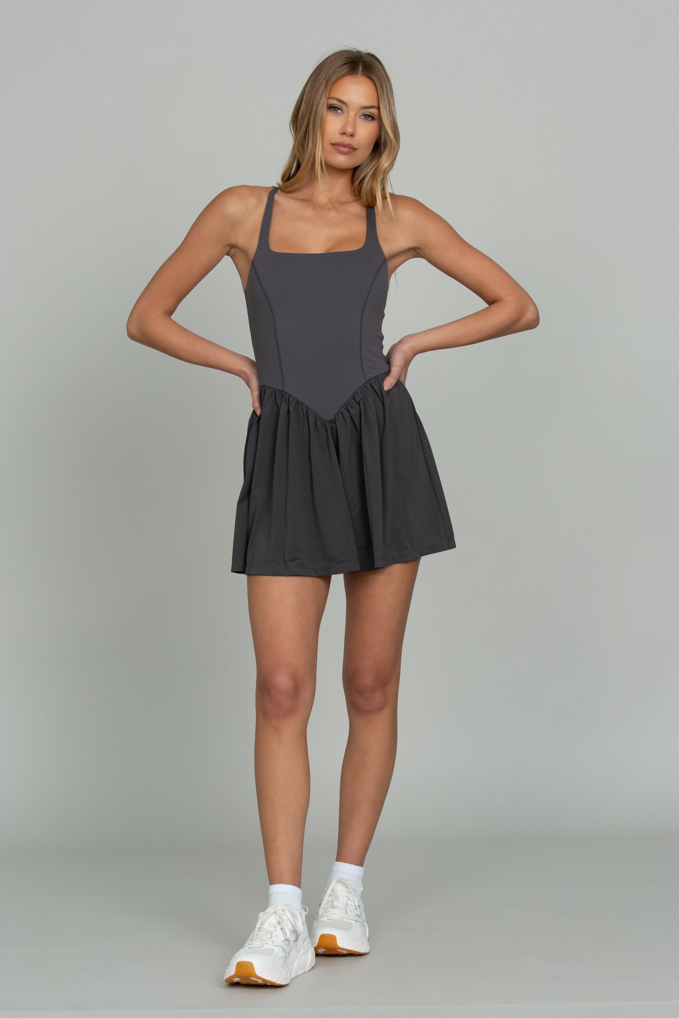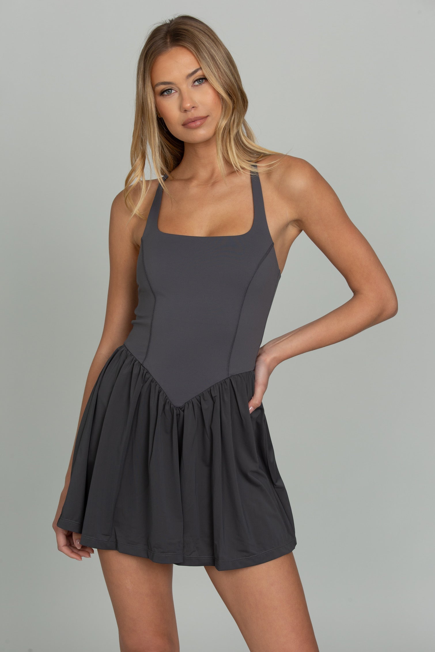 Bone 2-Toned Tiered Pleated Tennis Skirt